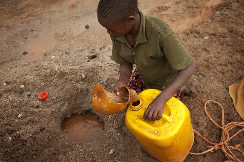 川の水が足りないときには、水が出るまで穴を掘る。その水は決して衛生的ではない。(WaterAid/ Anna Kari)