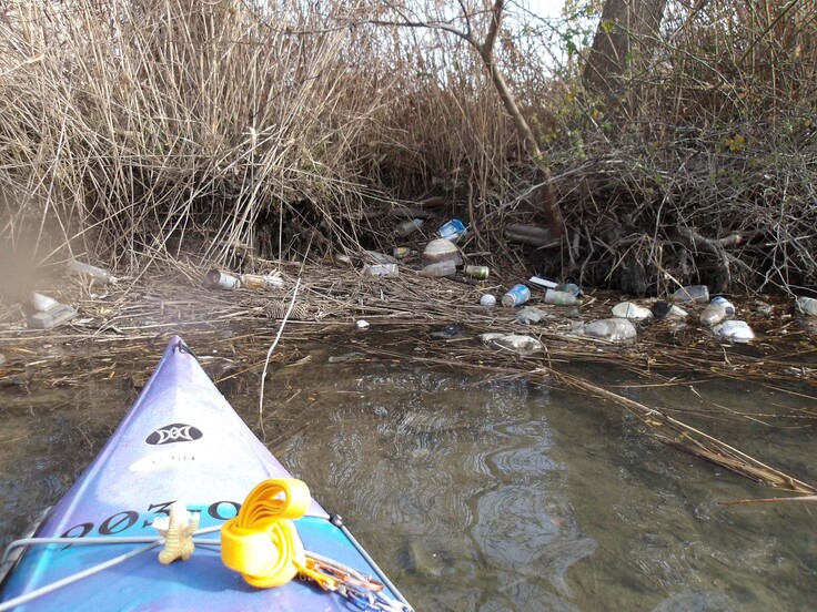 (ゴミだまりのアシの根元に見える穴はヌートリアの通り道です)