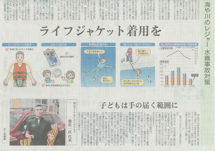 海の日ということで水辺の事故防止についての取材を掲載していただきました^^;