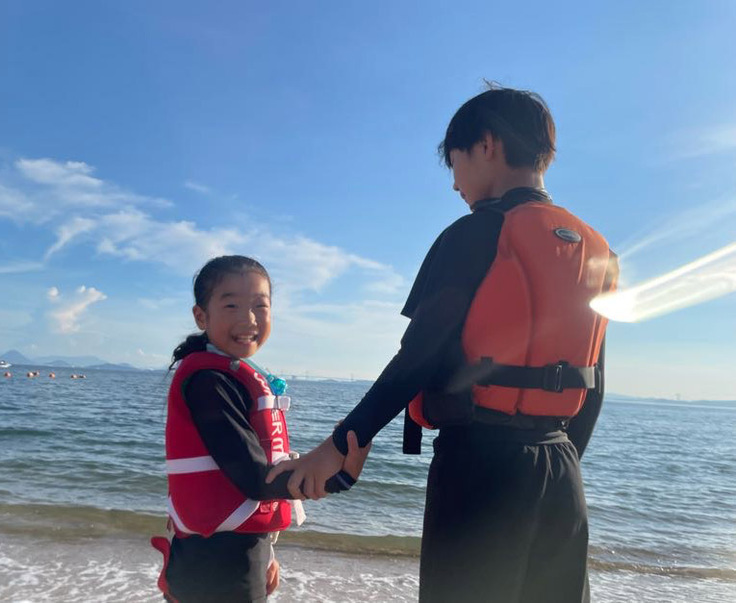 それでも毎回新しいことにチャレンジしながら、海で安全に過ごすには?、パドルの使い方は?、SUPの上でバランスをとるには?などなど、小さいカラダではしゃいでいるとあっという間の夕暮れ時でした。