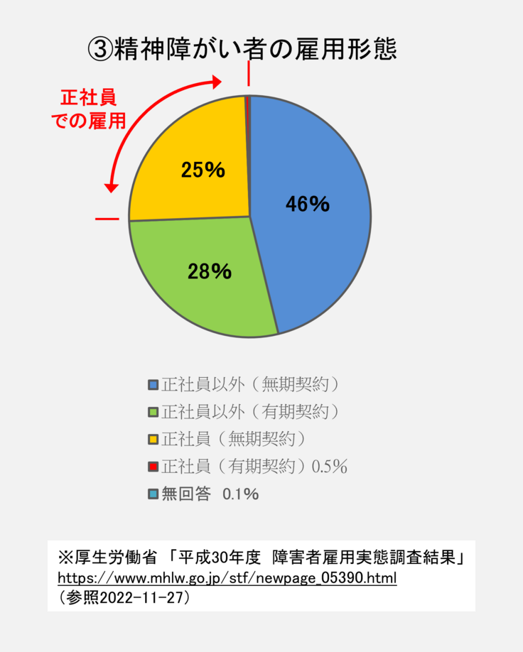 収入のボリュームが最も大きいと予測される正社員雇用が、精神障がい者の雇用全体の約25%。