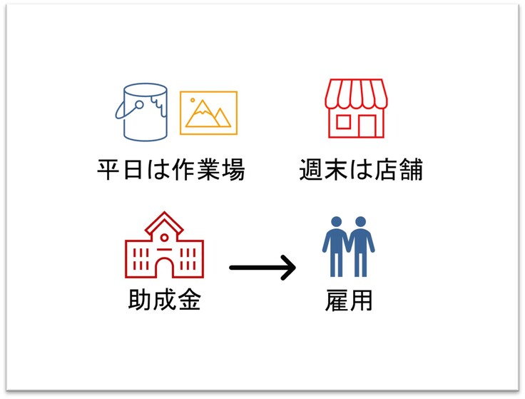 3年以内にシルクスクリーンプリントのワークショップを開始し、作業のサポートとして障がい者のアルバイトを1名採用する。(1年~2年以内の正社員採用を前提で)