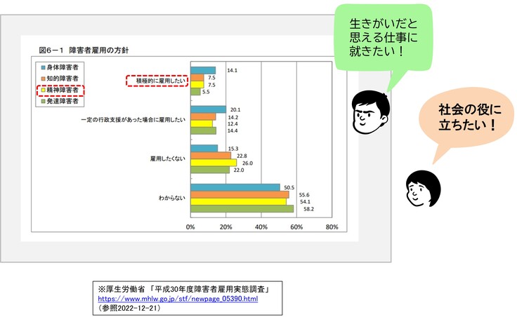 もちろん職場での物理的な配慮の可否、障がい者雇用における助成制度の充実なども今後の大きな課題だと思います。