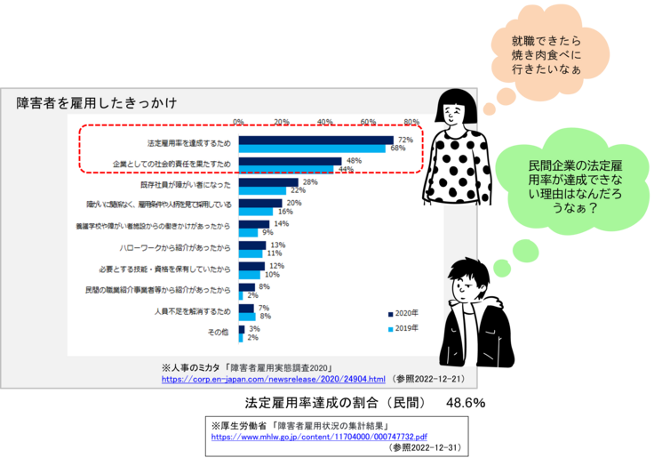 私は、ネット上で手に入れられる資料を見て自分なりに障がい者雇用が進まない理由を考えました。