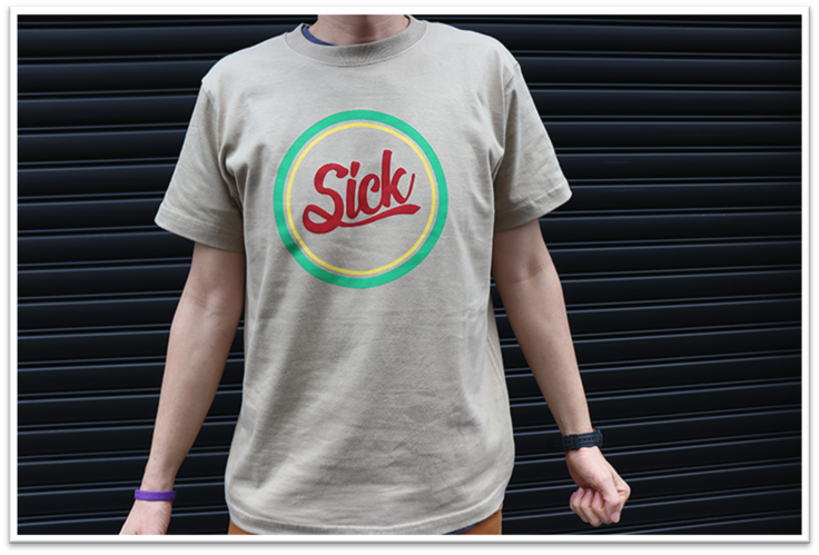 「Sick」には病気という意味や、スラングでかっこいいという意味もあります。相反する意味をもつ言葉をPOPにあしらってみました。