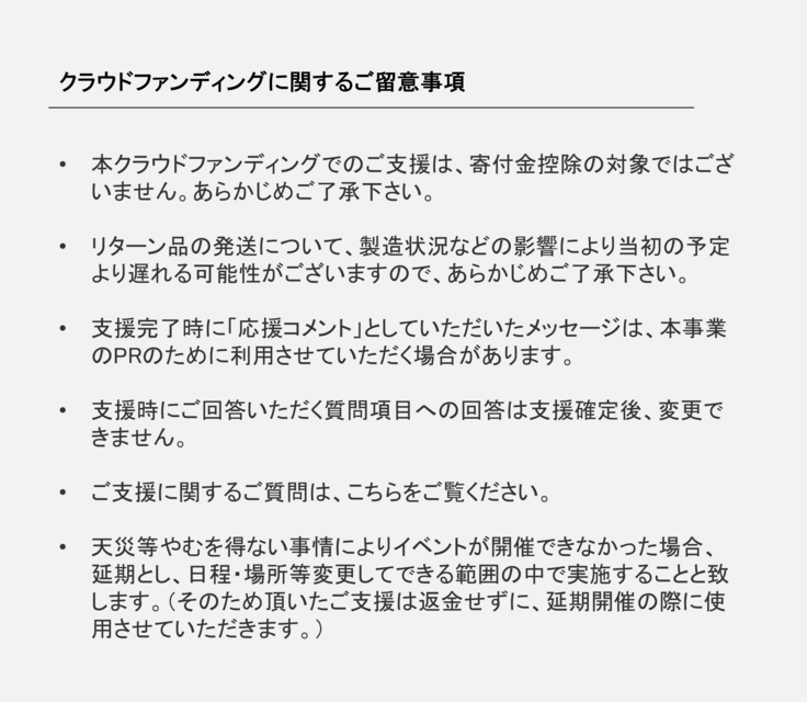 リターンが無いため、全額プロジェクトに充てさせていただきます。
