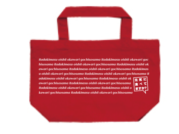 10年前から日本の高齢化率は世界一であり、今やその数字は26%に達し医療・介護費用は国家財政を逼迫しています。昨今、医療界では高齢者の低栄養状態がクローズアップされ、その対策を講じることが超高齢社会における問題解決の一助となることが分かってきました。国も昨年11月11日に「スマイルケア食」を発表し、高齢者の低栄養対策に臨んでいます。だからこそ私たちも『元気に食べてますか?』運動を盛り上げていくため、オリジナルデザインのトートバックを無料配布し、栄養の重要性を啓発したいと考えています。
