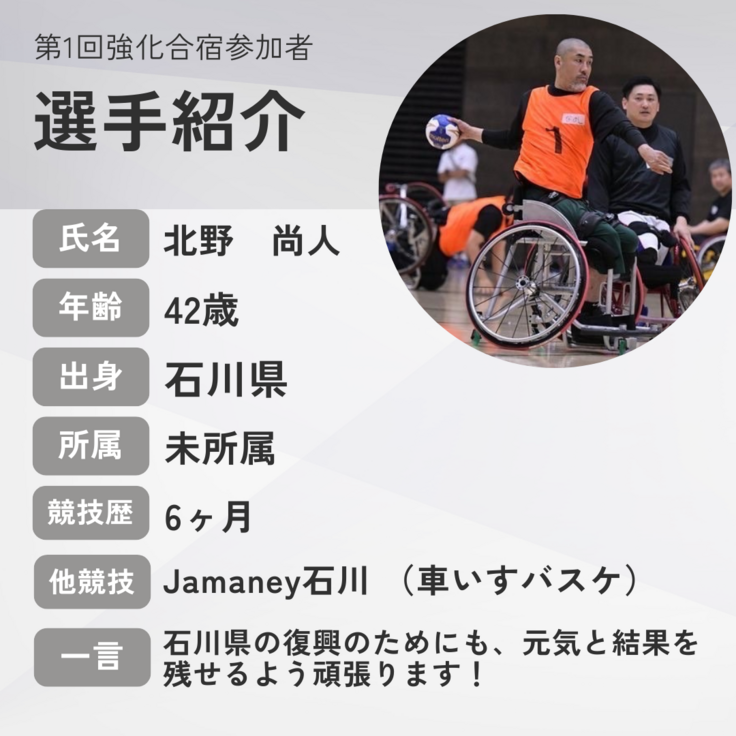 他競技の所属チーム(競技名):Jamaney石川(車いすバスケットボール)