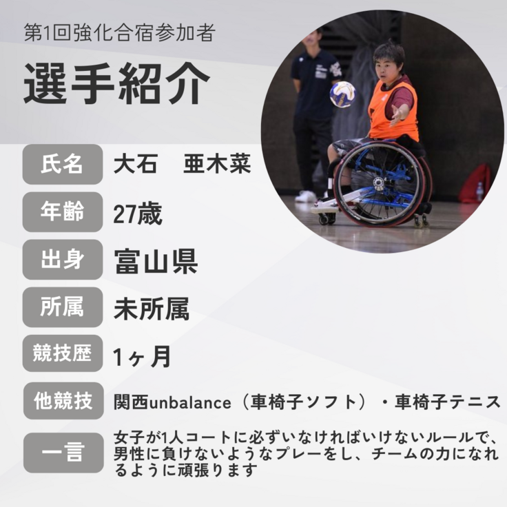 他競技の所属チーム(競技名):車椅子ソフトボール(関西unbalance)、車椅子テニス