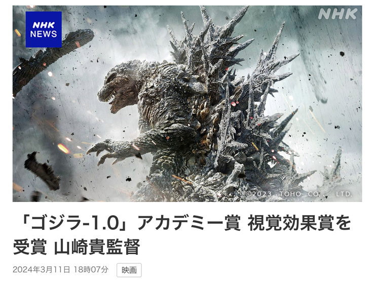 日本映画のゴジラ−1.0の受賞は大変喜ばしいと思っています。