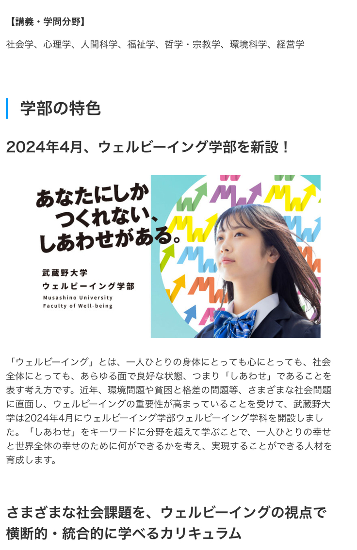 武蔵野大学にウェルビーイング学部ができたそうです❣️