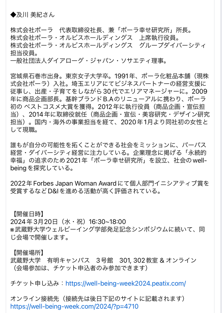 及川様は、ポーラ幸せ研究所の所長をされています。