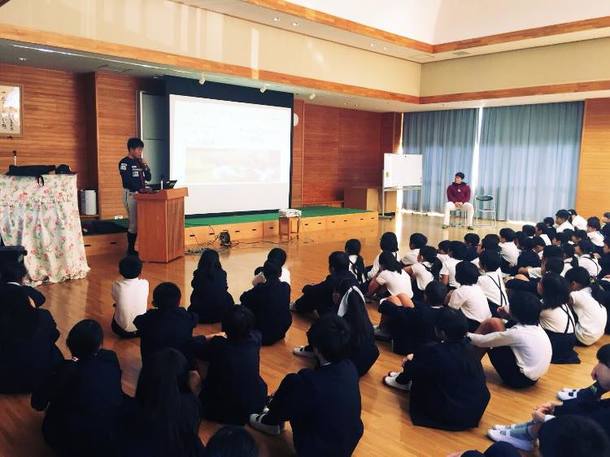 キャプテンの岩城選手、そして最優秀選手の松浦選手が、上秋津小学校で講演活動を行いました✨
