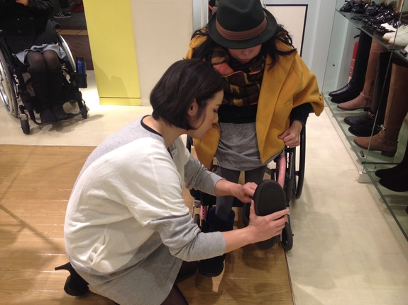 福岡での「車いすでお買い物ツアー」の時に、理学療法士の岡野菜摘ちゃんから、絶対に履ける靴があるから探そう!と背中を押され、後日ご自分で靴屋へ立ち寄られました。