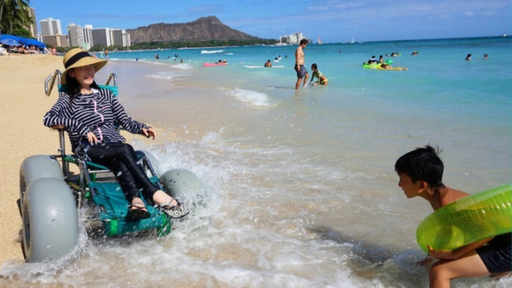 私自身、行ける場所がわからず、1年半ほど外出をためらった時期もありました。でも、インターネットで知った「車いすでも行けるビーチ」の情報が私の世界を変えてくれました。