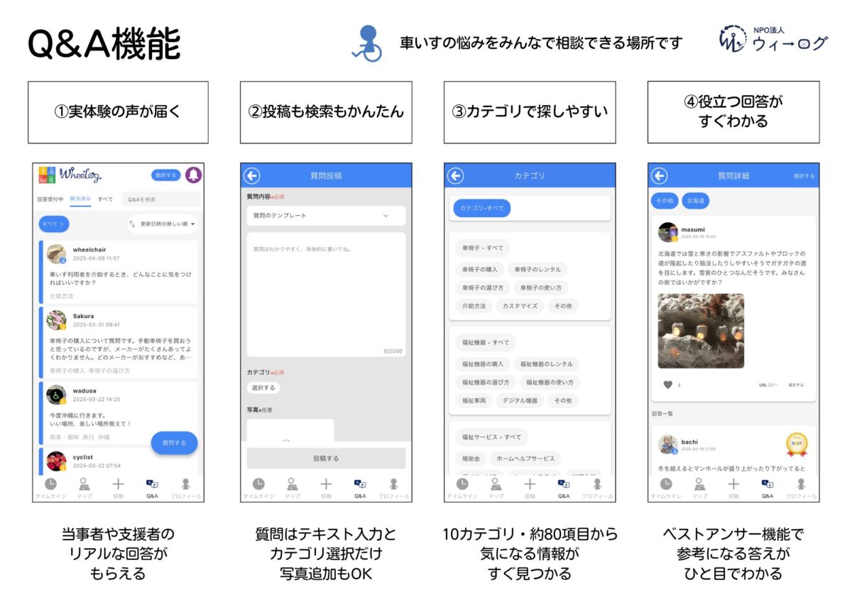 昨年は、クラウドファンディングでのご支援のおかげでアプリの大規模改修を実現できました。Q&A機能「車いす相談室」も新たに実装でき、誰かの「困った…」に「こうしたらうまくいったよ」という声が返ってくる。そんな、あたたかい循環がこれまで以上に広がりはじめています。