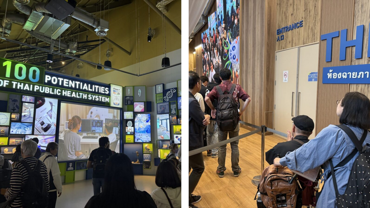 タイ館は、最初の映像上映から始まり、その後の展示では公衆衛生や医療、そして豊かな食文化が紹介されており、タイの最先端と文化を伝える内容になっています。