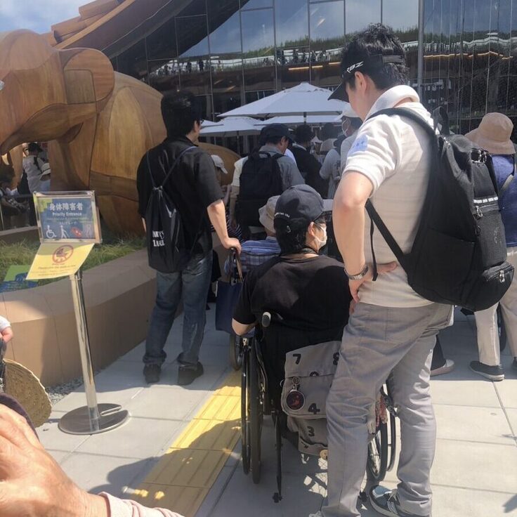 優先レーンの対応は、各パビリオンや訪問時間、混雑状況によって異なります。介助者の人数が制限されることなどもあり、障害者手帳の提示を求められるところもあります。運用は柔軟に変更しますので、あくまで参考程度に留めておいてください。