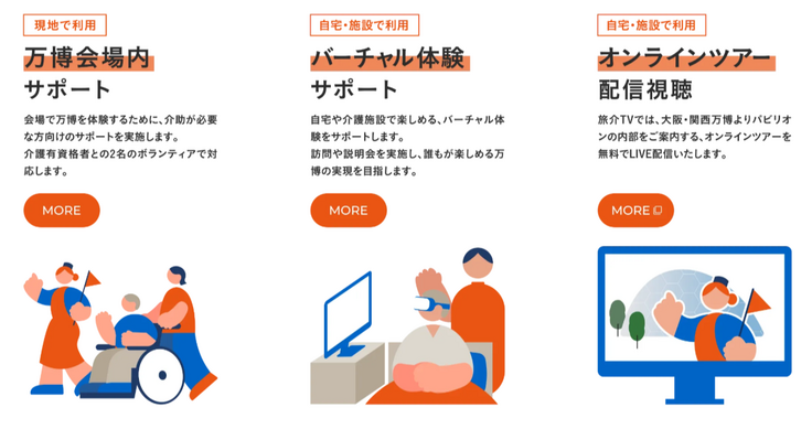 LET’S EXPOでは、万博会場までのサポートや、自宅から万博を体験できるバーチャルサービス、オンラインツアー配信を提供しています。これにより、物理的な障壁があっても万博に参加できる機会を創出し、誰もが「行きたい」と思える万博を目指しています。ぜひLET’S EXPOのウェブサイトもチェックして、様々なサービスを活用してみてください。