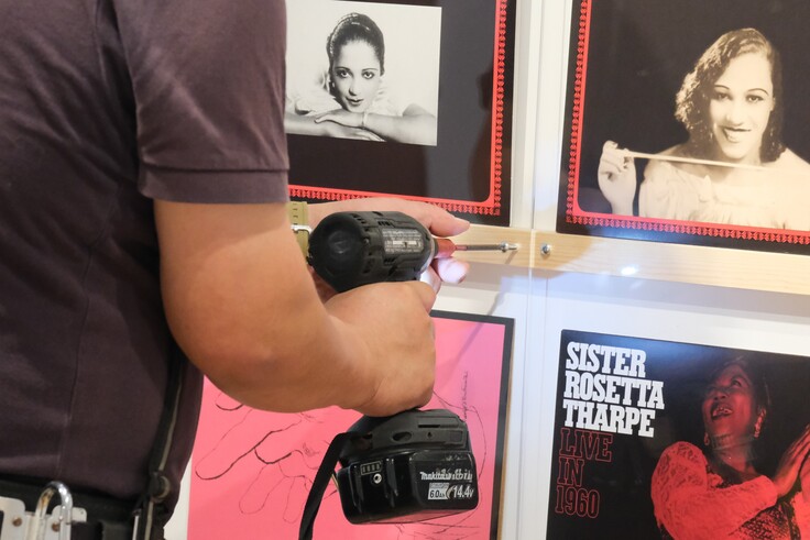 「女性ジャズフェスティバル」の企画のひとつ、「黒人女性の文学とジャズ展―ブラック・フェミニズムをたどる」 は11/13(木)の初日を前に、設営作業が進められています。