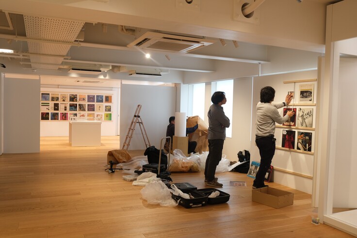 昨日11/11(火)は、展示するパネルやレコードジャケットの設置が進められました。
