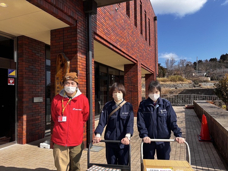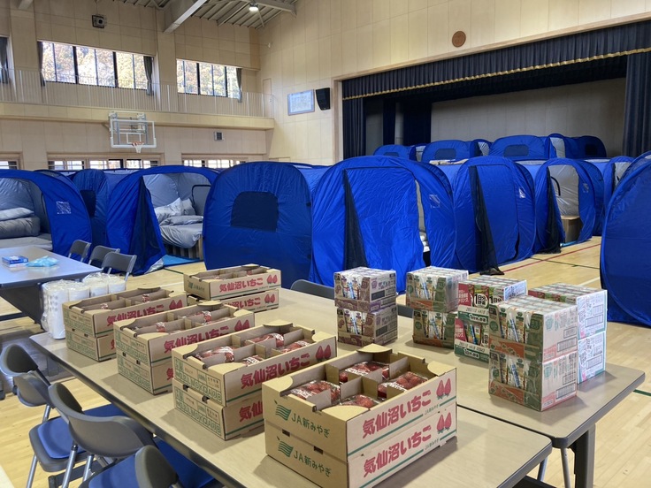 私たちは週末も大船渡市内の避難所を回って、避難所を運営する方や避難者の皆さんの声に応える形で物資を届けながら、移り変わるニーズを確認しています。昨日9日は、連携する緊急災害対応アライアンス「SEMA」の参加企業から提供いただいた靴下(ナイガイ)150足、長袖シャツや下着(千趣会)など120着を三陸公民館の避難所に届けました。また、「お弁当などが続き栄養が偏りがち」との声を受けて、新鮮なイチゴ64パックもお届けしました。