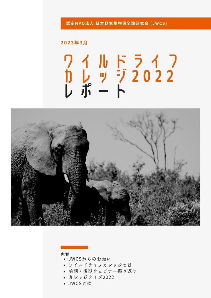 PDFでのご送付も可能ですので、Ready ForのメッセージやJWCSのお問い合わせからご連絡ください。記載のメールアドレスへ「ワイルドライフカレッジ2022レポート」をPDFファイルでをお送りいたします。