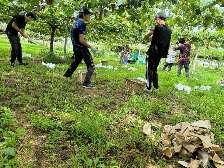 新規プロジェクトのため甲州の収穫を学生達と行いました。
