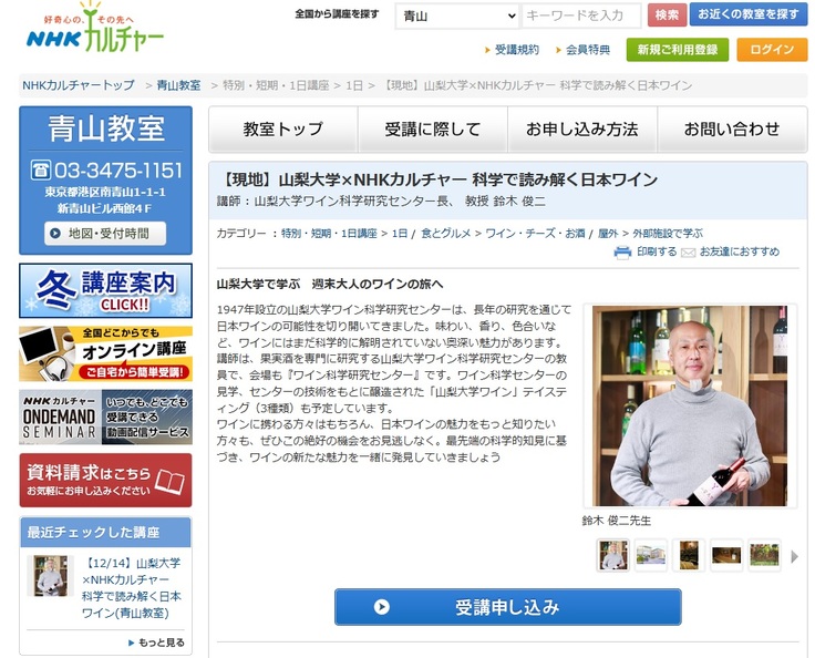 山梨大学×NHKカルチャー ・青山教室 科学で読み解く日本ワイン