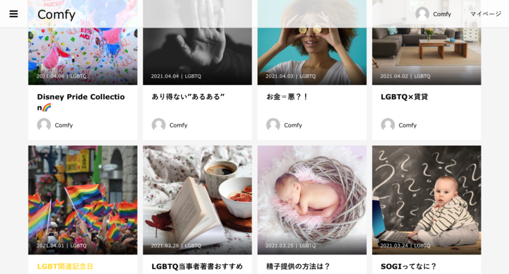 LGBTQポータルサイト『Comfy』にて、LGBTQに関する知識や情報を日々発信しています。