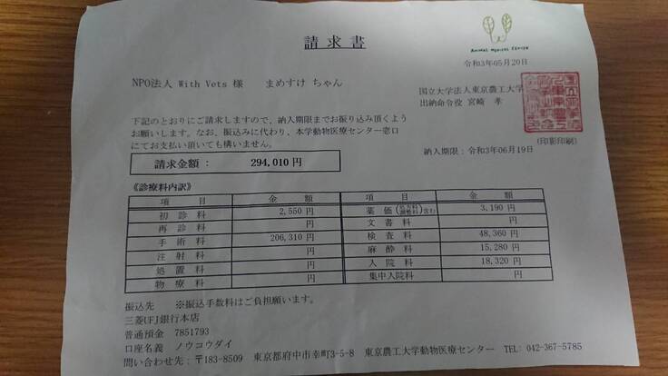 今回のプードル(まめすけくん)のように、生まれ持って病気があり手術をしないと長く生きることが出来ないと獣医の先生から言われました。