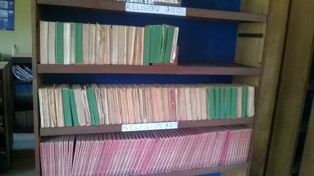 我々の図書室には、良い本がありません。写真をご覧いただくとわかるように、本は非常に古いものばかりです。