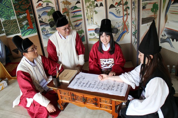たまたま景福宮にいったらイベントをやっていたのですが、スタッフの人たちがすぐに話しかけてきて、あっという間に着せ替えられていました(笑)