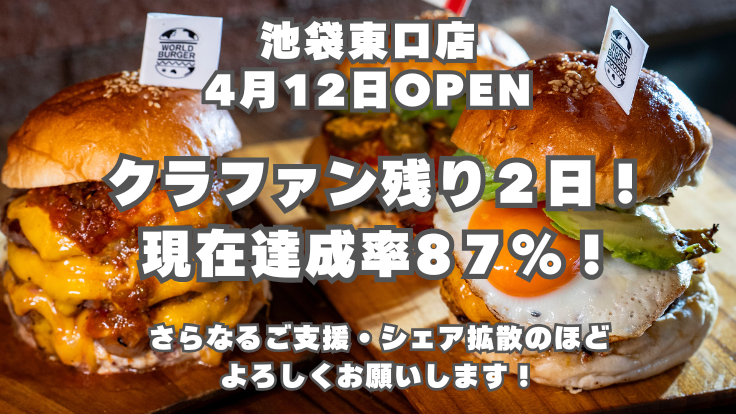 世界をエナジーチャージするというミッションを掲げ、海外進出を視野に入れた全国展開の足掛かりとなる重要な店舗となります。池袋を拠点にここから大きく展開するWorldBurgerをぜひ応援してください!