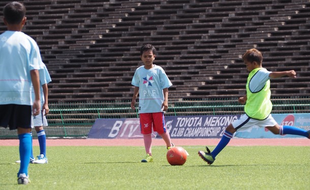 このボールを蹴ろうとしている子どもは普段スマオン村という農村地域に住んでいて、小学校のグラウンドでサッカーをしています。