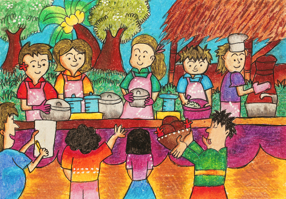 東北地方の被災地の子どもたちを励ますために、バリ島の子どもたちが一生懸命に絵を描いて贈ってくれました。そして日本の子どもたちも、私たちも元気にが んばっていますとの思いを込めて、アンサーピクチャーを描きました。 両国の子どもたちがこうして海を越えた友情を育てるきっかけとなった素晴らしい絵を、世界中の多くの人々に見ていただき、知っていただくために、「海を越えて支えあう子ども達展」を開催します。