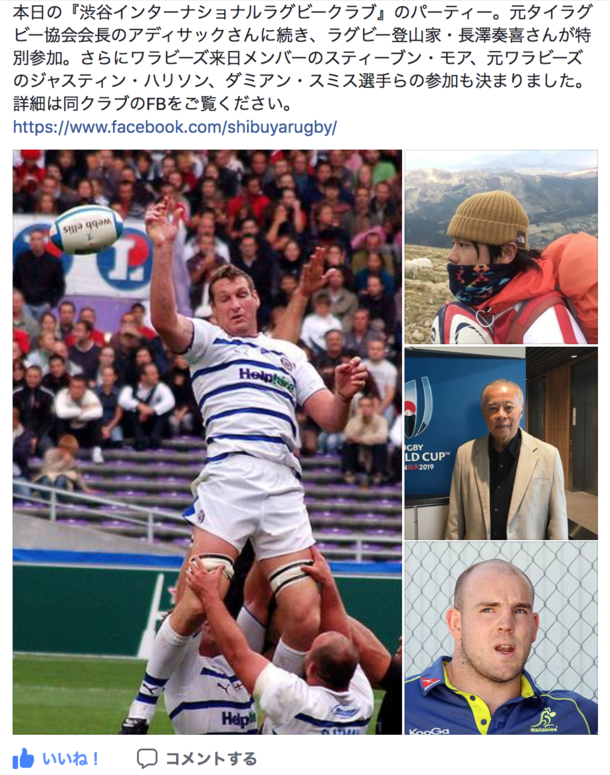 色々と動いております。ラグビー関係者の集まるパーティーやイベントにも顔出しております。