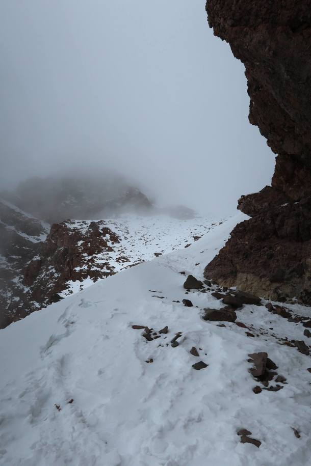 アタック時には同じタイミングに登っている登山家がまるで魔法がかかったように止まって見えて驚きました。おそらく僕も周りからそう見えていて一歩踏み出して3秒ほど休み、また一歩を踏み出すといった具合に、こんなにもペースが遅く歩いた経験はかつてなく、とは言っても己のエンジンの限界を悠に超え、オーバーヒート寸前でした。地上の1/3の酸素と言われている中、グランカナレーターという30〜45度の最後の急坂では、意識はもはや飛んでいる状況で、気づいたら山頂にいました。気絶をしている状態で登頂していたと言えばいいのでしょうか、超極寒の中「辛さ」に関わる己の感覚を麻痺させ、とにかく一歩、一歩をどんなに歩幅が小さくても継続させるのだという脳内モードに覚醒させ、登頂していました。今まで知っている「辛さ」のその先の「辛さ」でした。