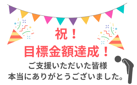 皆様からの温かいご支援を頂き、目標を達成することが出来ました。