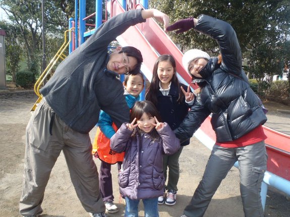 (2011年度第5回ウォークラリー大会チェックポイントの家族集合写真)