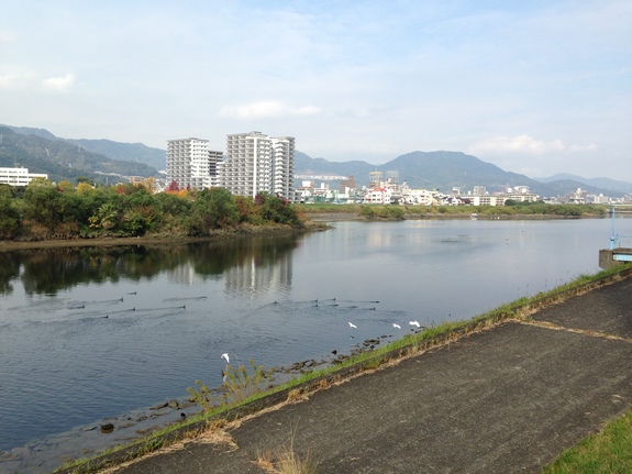 渡り鳥たちは、海から昇ってくる魚を楽しみに川にやってきます。