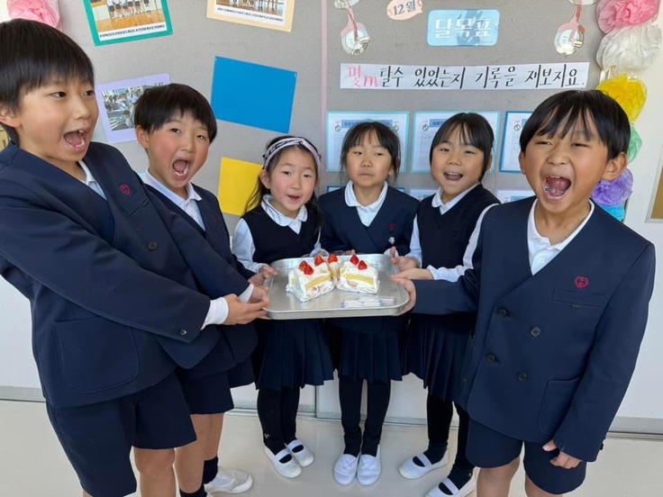 2月16日の光明星節を祝して園児、生徒だけでなく教員達にもシャトレーゼの美味しいケーキを送ってくれました。