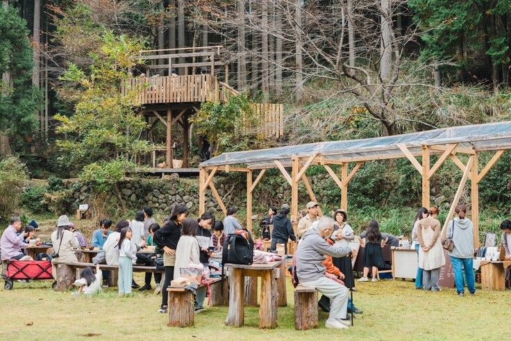 山フーズさんによる茶席がすばらしくて、この瞬間のために準備してきたんだなと涙ぐんだり、トゥクトゥクを運転して集落を走ったり、紅葉弁当が美味しいという声がいろんなところから聞こえてきたり、地域のおじいちゃんおばあちゃんがなんだかうきうき楽しそうにしているのに喜んだり、マルシェやワークショップをめいめいに楽しんでいる人たちの姿にほっとしたり、糸山くんの音楽が森に広がっていく時間を楽しんだり。