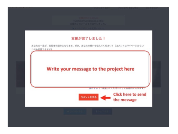 Please write your message for the project (the message will be listed on the project page) and send the message by clicking the red button below the blank.
