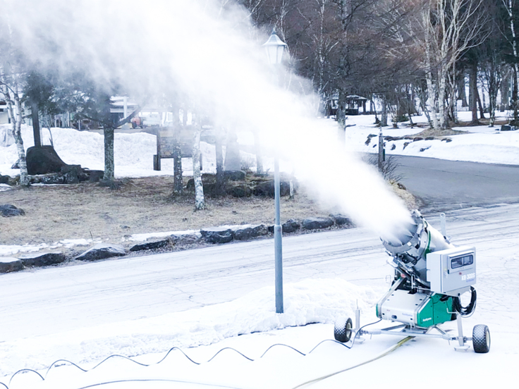 しかし、近年は暖冬の影響で雪不足が深刻化しており、全国的にも人工降雪機の重要性が高まっています。やぶはら高原スキー場では平成3年よりスノーマシン を導入し、現在は50台以上(固定式・移動式)を稼働させて安定したゲレンデを維持していますが、導入から30年以上が経過し、更新の時期を迎えています。