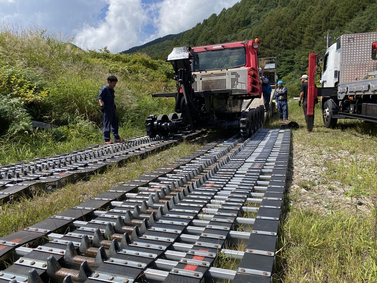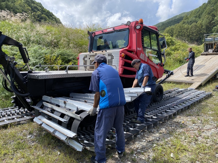 圧雪車が夏季整備を終え、ゲレンデ戻ってきました