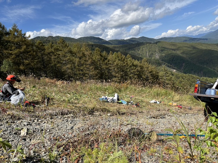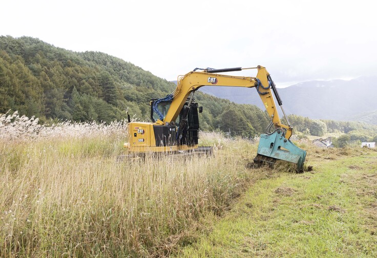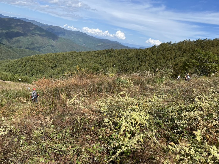 先週からは「手刈り部隊」も加わり、スタッフが毎日山頂まで登って草刈り作業に汗を流しています。