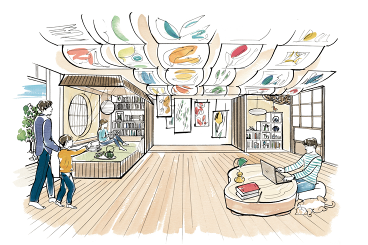 将来的には、下記画像にあるような、アートに囲まれた宿泊体験ができる民泊を目指します。(イメージ)