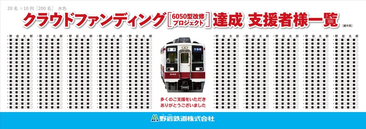 HPに掲載している「支援者名」と同内容(一部変更あり)で今後、「車内に支援者名掲載(車両内広告スペース)」の作成準備に進む予定です。
