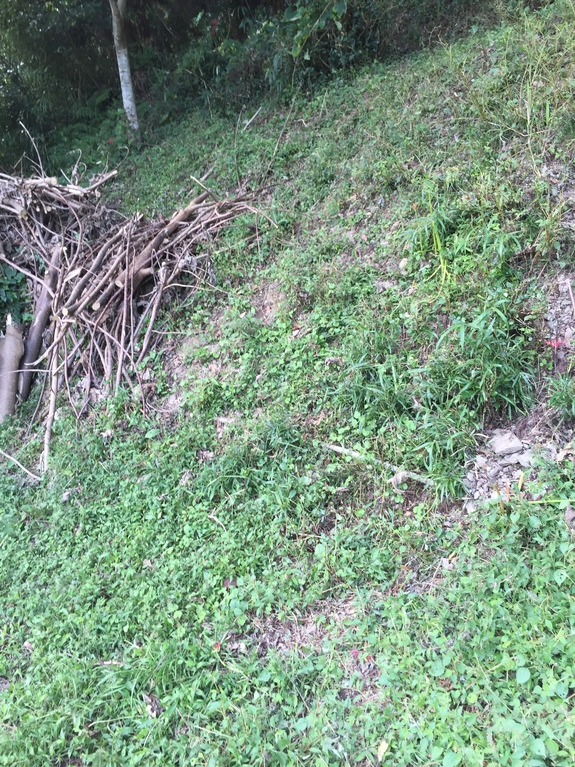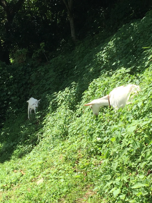 除草を始めたばかりの傾斜地です→山羊を放して翌日にはこの状態までなります。